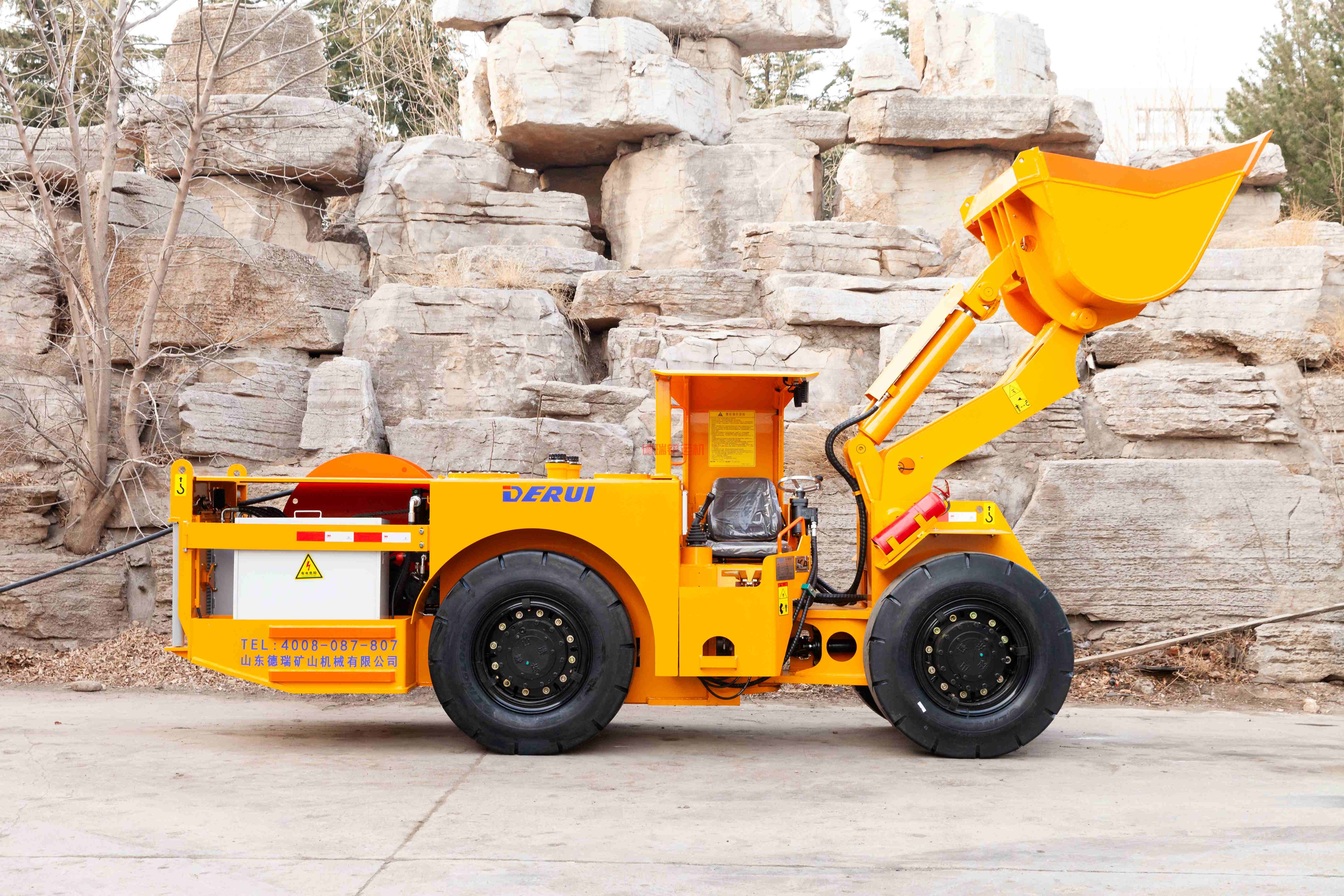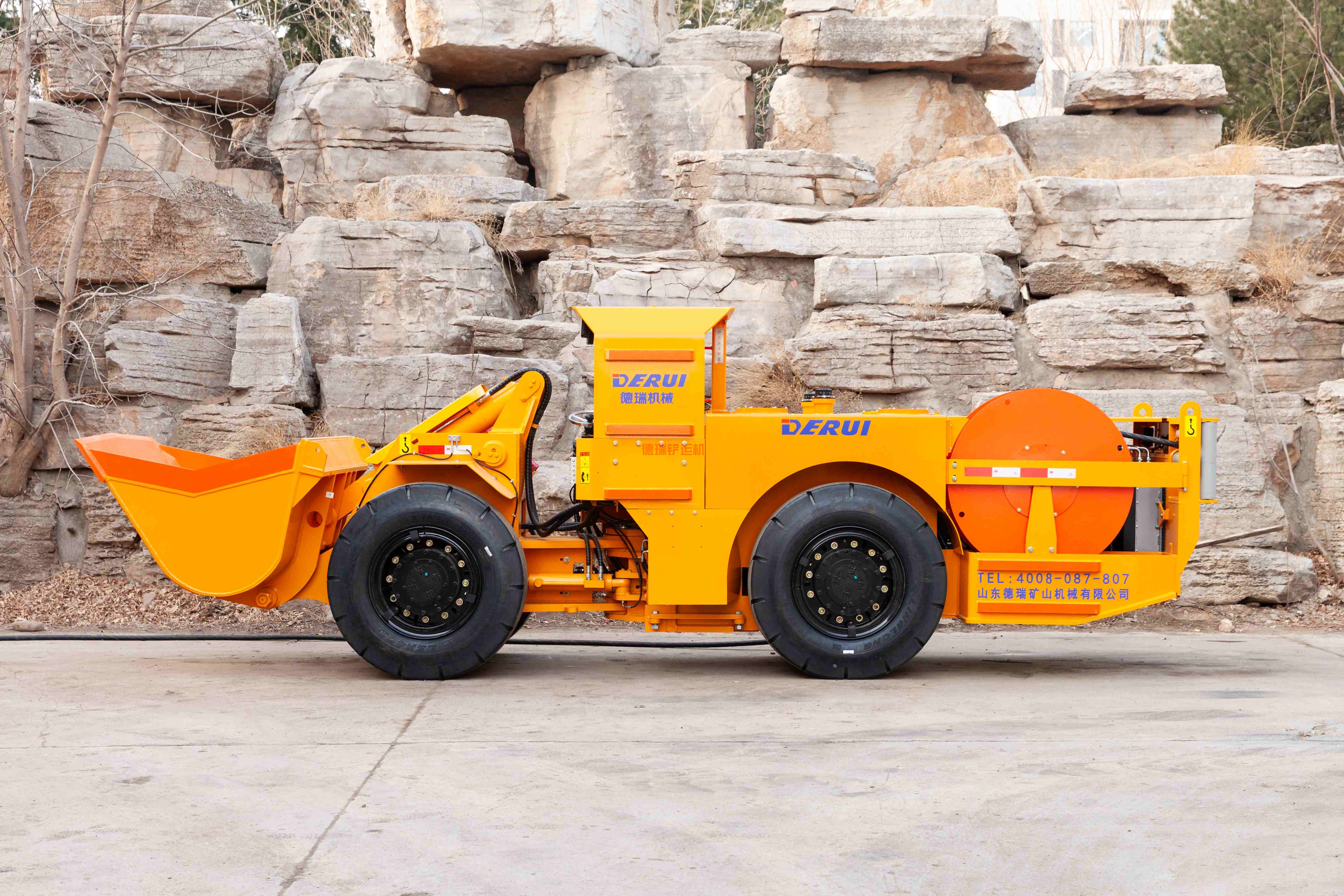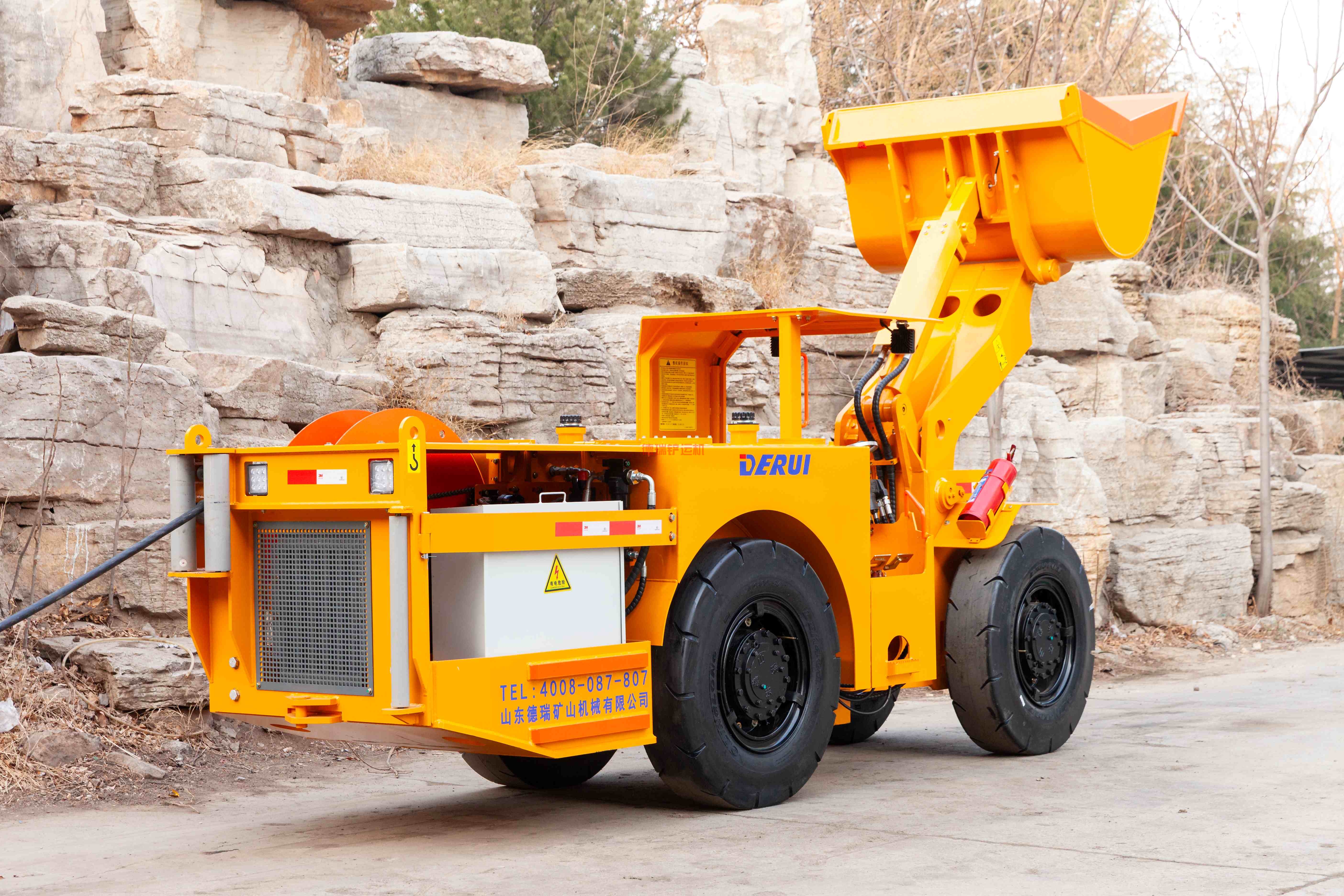 自动卷缆系统维持电缆张力在一个恰当的范围,提高电缆使用寿命。超长电缆设计,增加了铲运机的工作范围。中央铰接带锁定装置,使设备在维修过程中更加安全可靠。