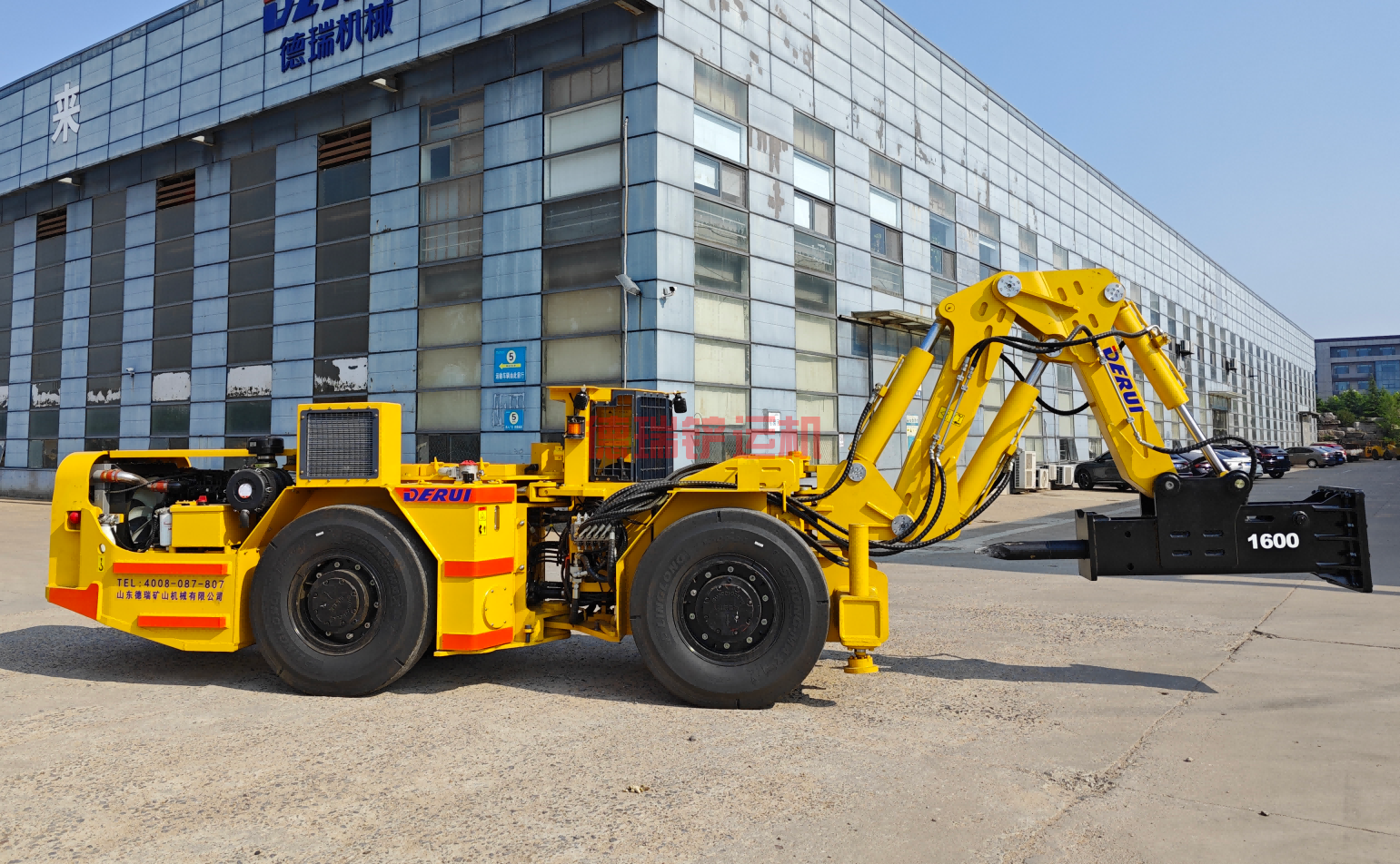 UPT-97/1800 型矿用破碎台车适用于各类金属矿山的二次爆破,用于溜井漏斗处、采矿房对矿石的破碎,节省大块矿石的改炮、炸药、人工等费用,移动设计不受场地限制,具有效率高,破碎力强,操作维修简单等特点。提高生产效率,降低总运营成本。设备尺寸紧凑、转弯半径小,适合在狭窄的巷道内运行。