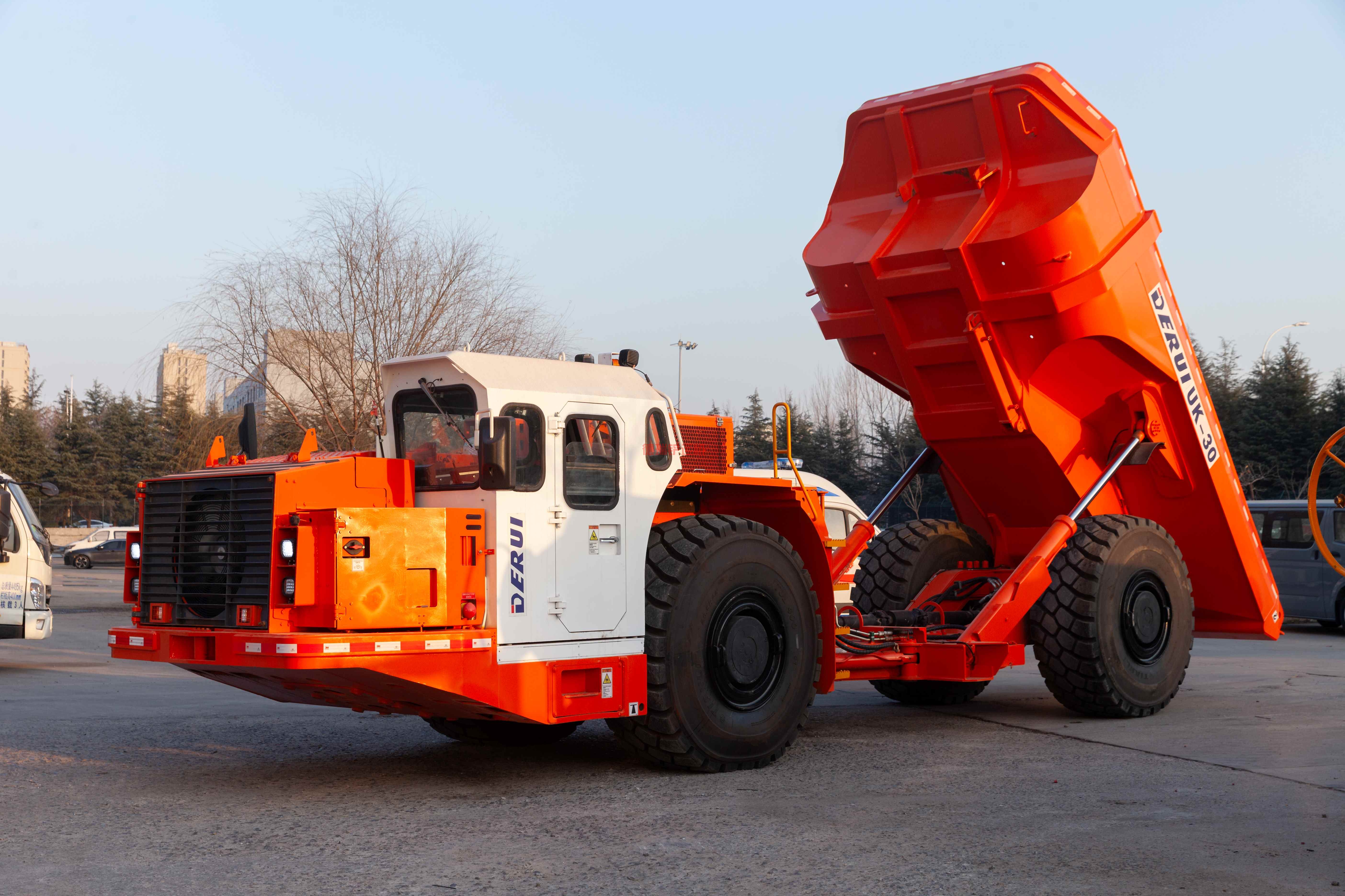 德瑞DRUK-30是一种紧凑型具有30吨运载能力的地下矿用卡车,配置中央铰接摆动装置,能应用于5.5×5.5米以上的地下矿山巷道运输。
