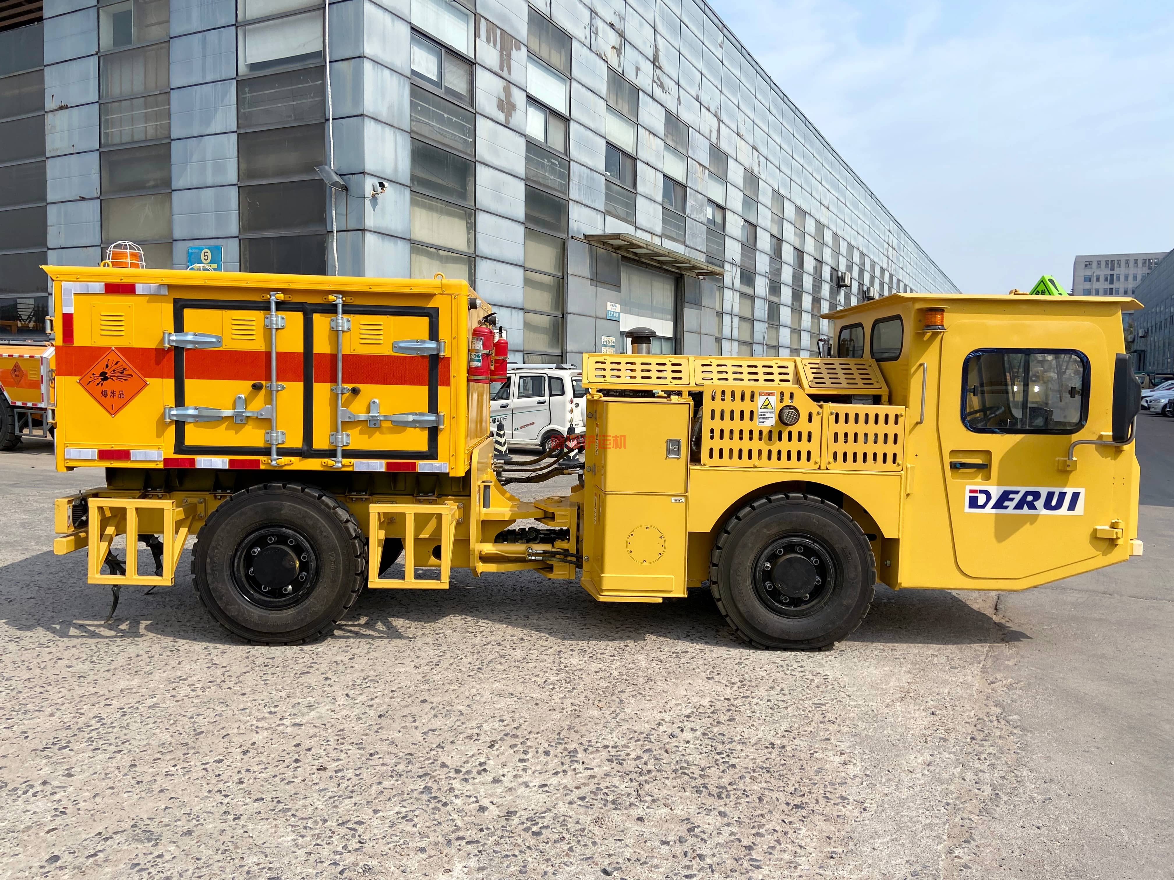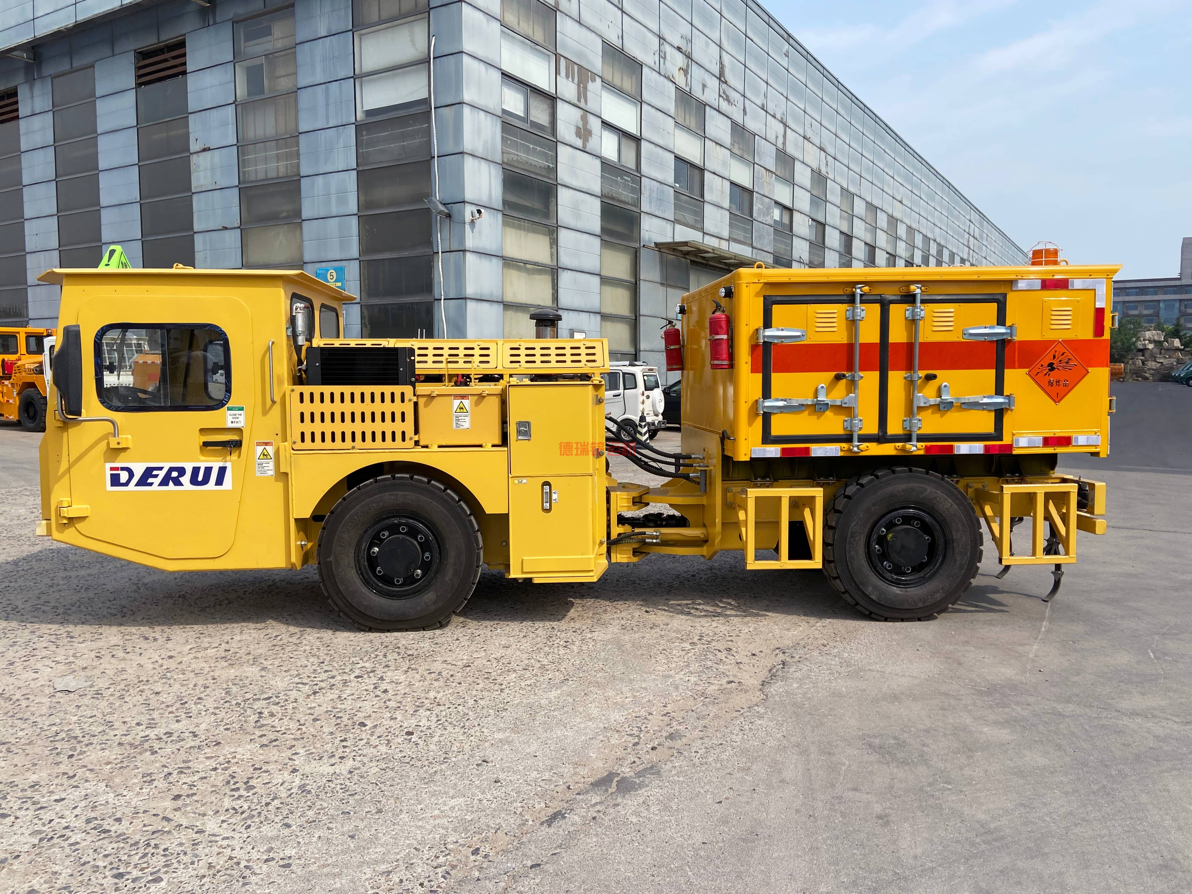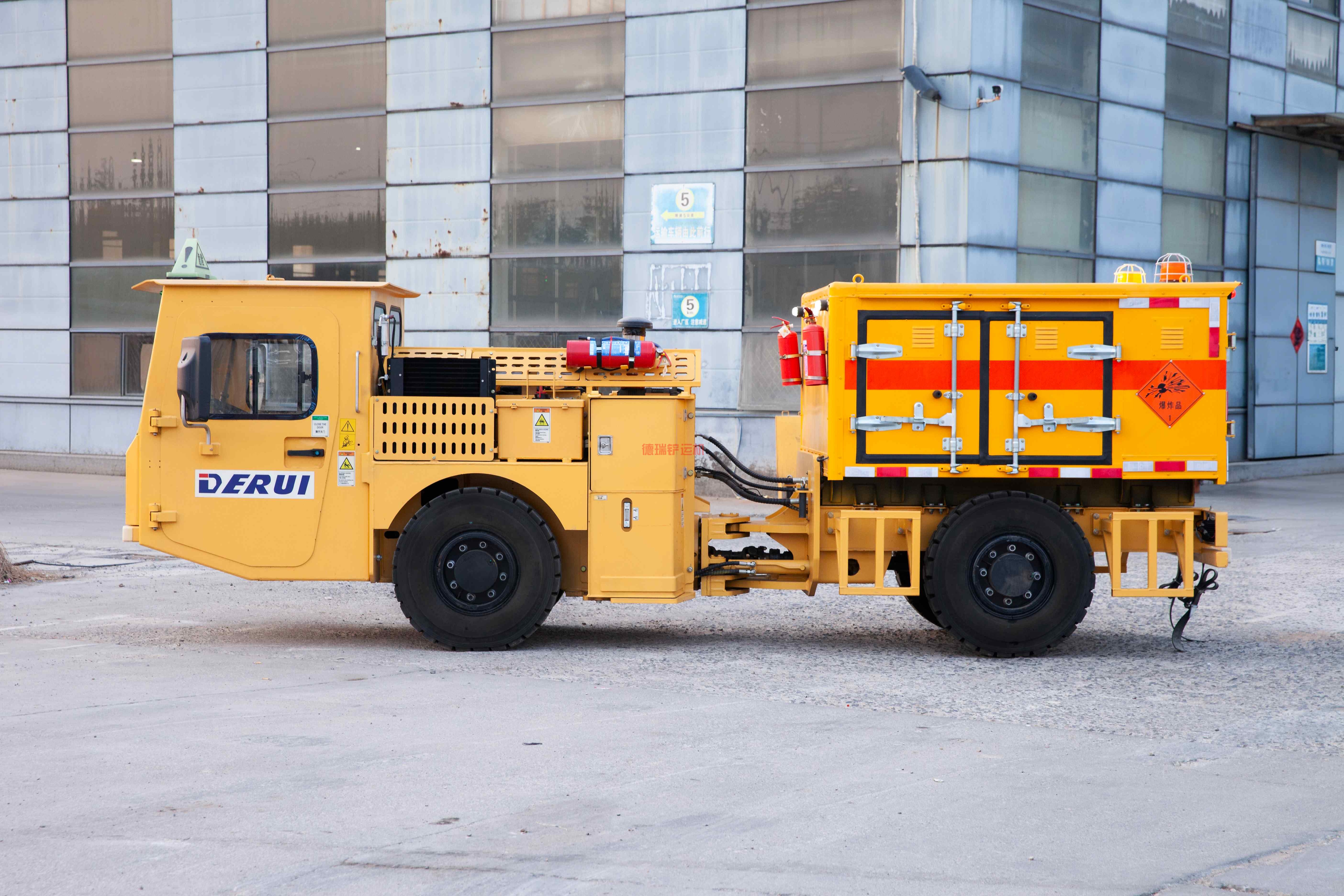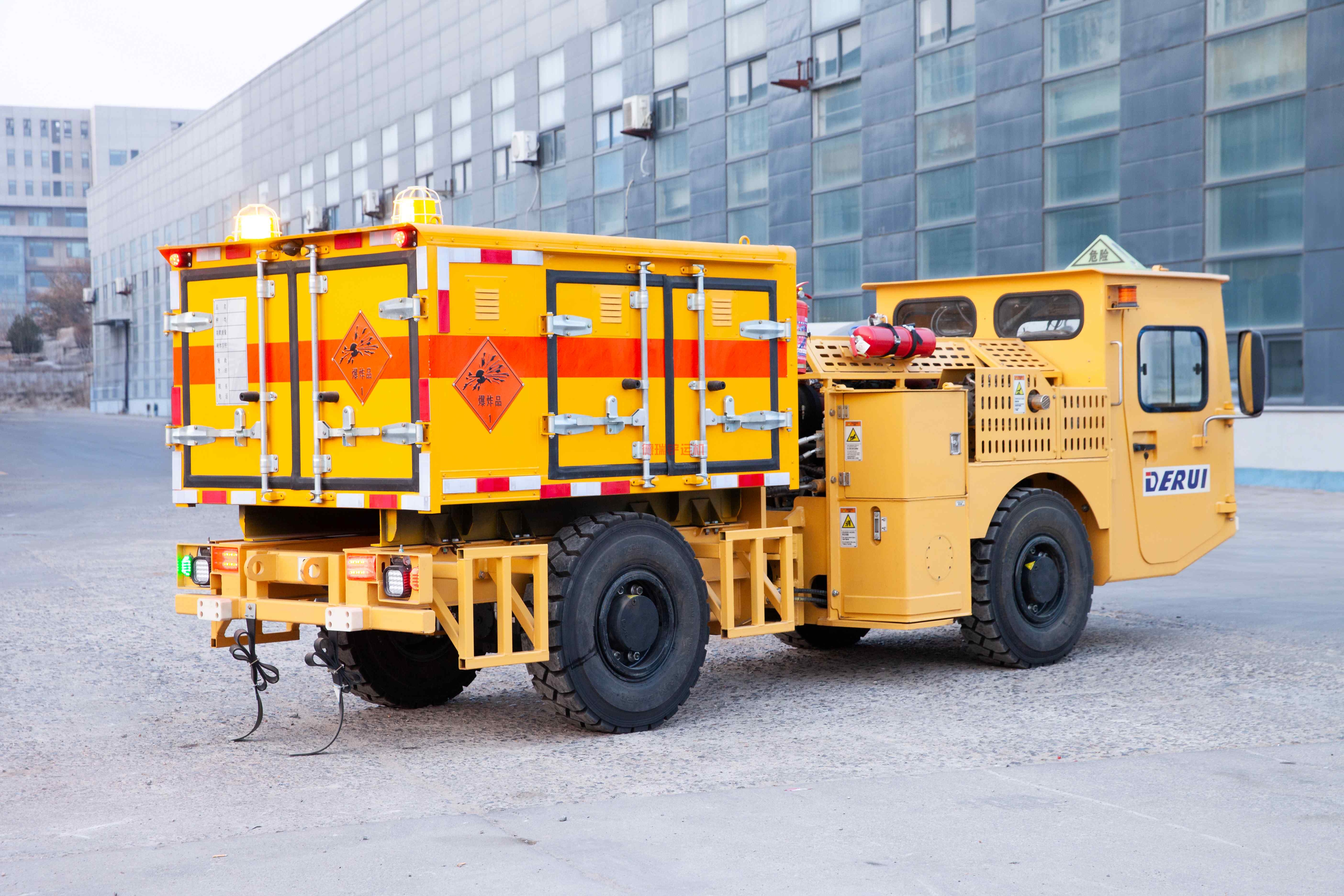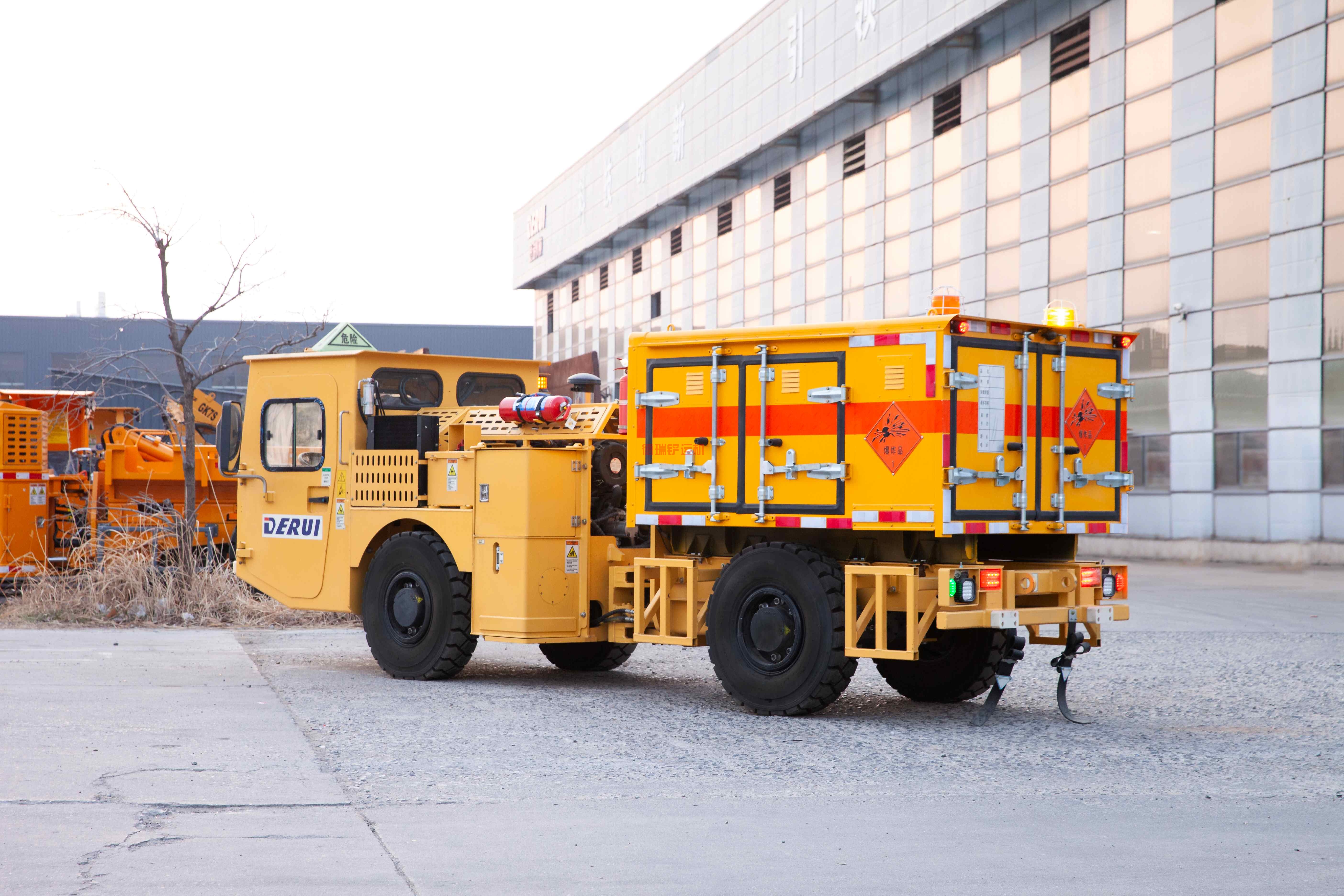 德瑞爆破器材运输车 FCB-1.5,适用于 2x2.5 米矿山隧道。该车主要用于井下 炸药运输,底盘设计专业,以柴油机为动力,适应能力强。